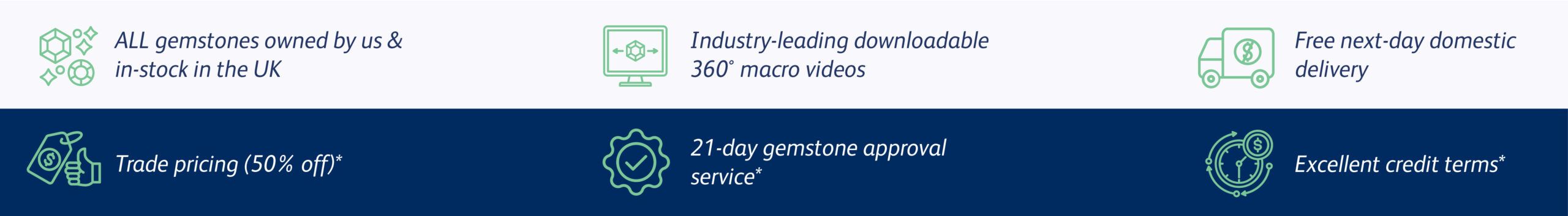 Welcome to our gemstone catalogue. Here you can browse our featured gemstones or view our complete range, organised by type & shape and displayed in size order.